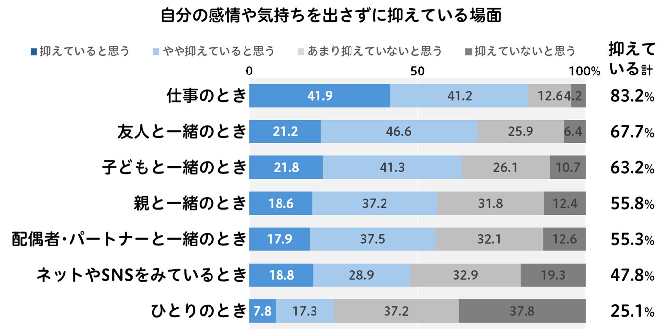 さらに調査を進めてみると、本音を出せそうなプライベート場面である日常生活にも生活者の「感情を出さない」様子がみられました。