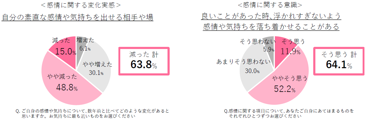 「自分の感情を出せる相手や場が以前より減った」と感じる生活者は6割超