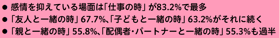 ・仕事だけでなく、プライベートでも感情を抑制する場面は多い