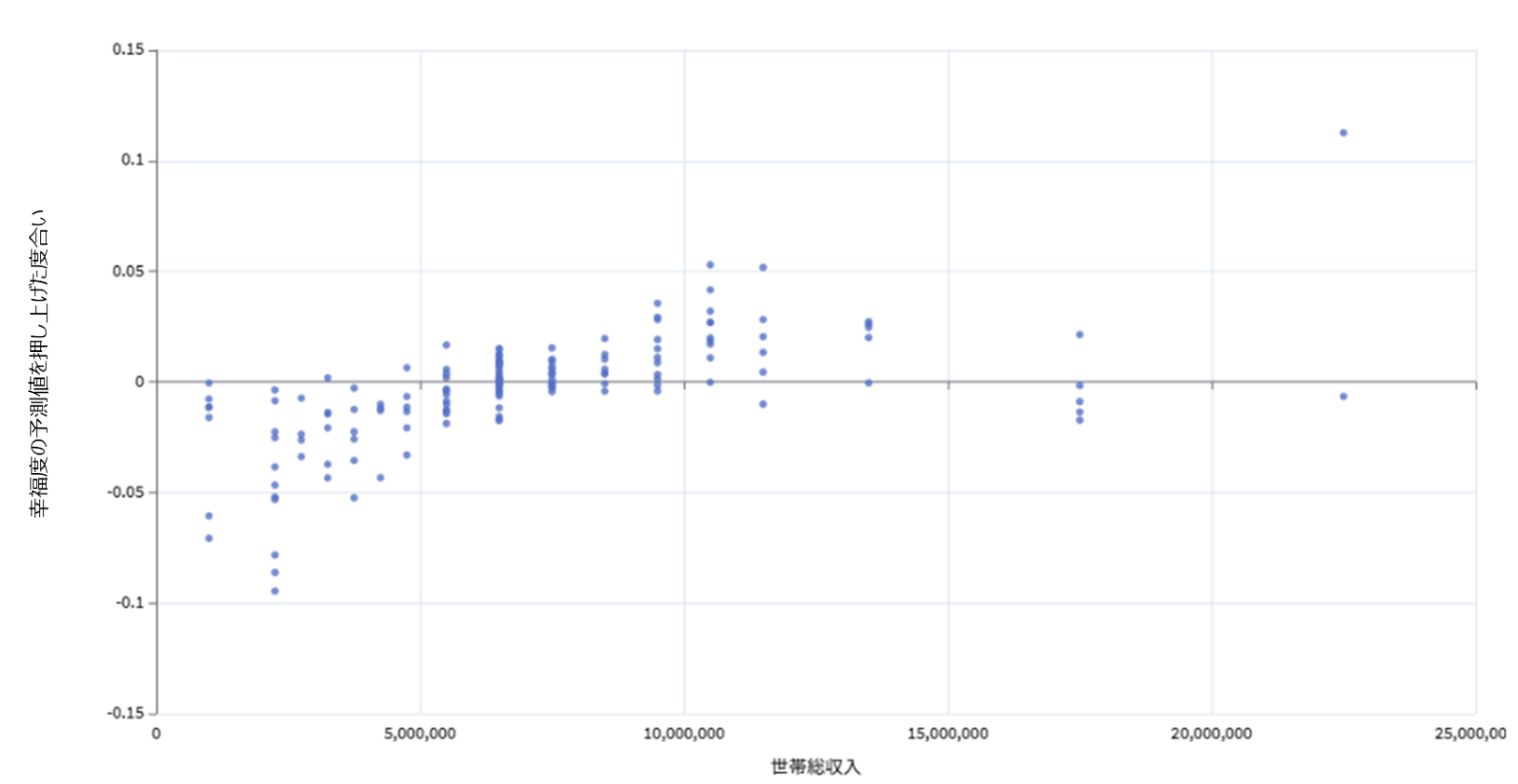 お金に関する項目も、もちろん幸福度に影響しています。しかし、その効き方には特徴がありました。